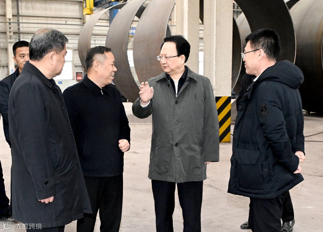 省委书记景俊海同志在市县相关主要领导的陪同下来到乾安天顺新能源装备制造产业园车间实地了解公司塔筒工厂和叶片工厂的实际经营情况,详细询问当前形势下风电装备制造业面临的挑战和机遇,现场指示相关职能部门研究解决应对方案,精准为企业发展保驾护航。
