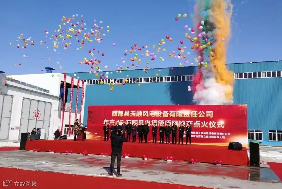 3月1日,商都县天顺风电设备有限责任公司举行年产12万吨风电塔筒项目投产点火仪式。