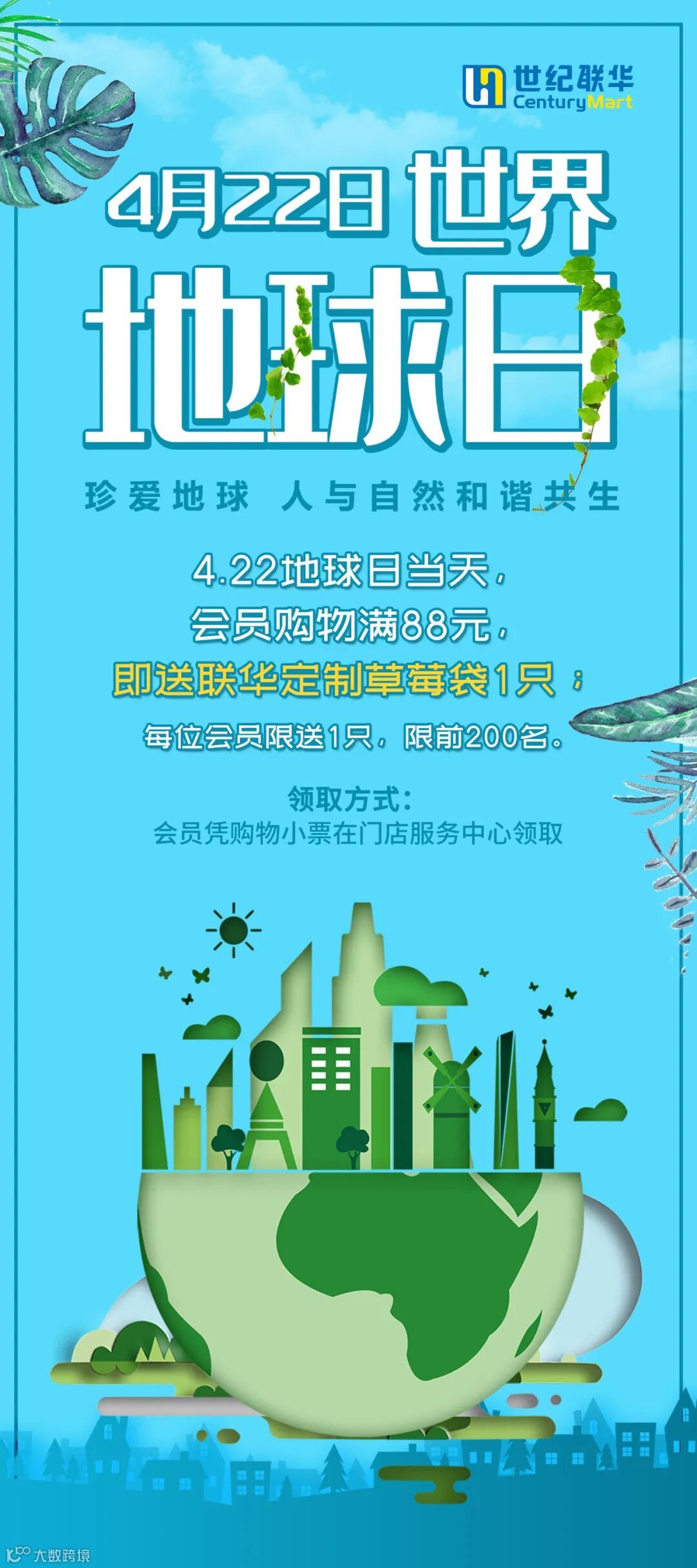 世界地球日(Earth Day)即每年的4月22日,是一个专为世界环境保护而设立的节日,旨在提高民众对于现有环境问题的意识,并动员民众参与到环保运动中,通过绿色低碳生活,改善地球的整体环境。
