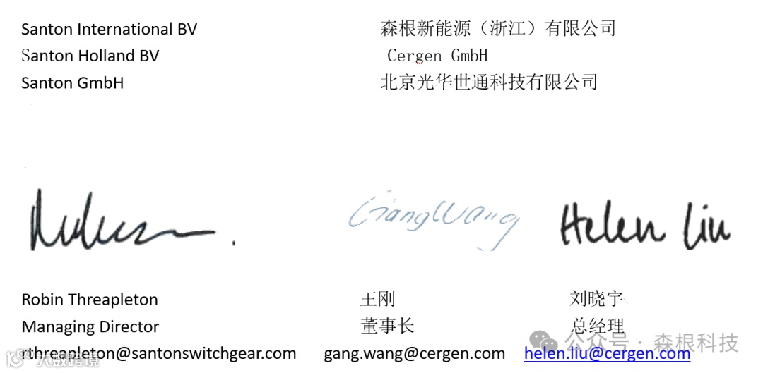 Peter Roelvink Sales Director Solar proelvink@santonswitchgear.com +31648875946(面向全球客户)Santon GmbH:Jurgen Alber Sales Manager DACH jalber@santonswitchgear.com +491726851757(面向DACH地区客户)森根(Cergen):www.cergen.com