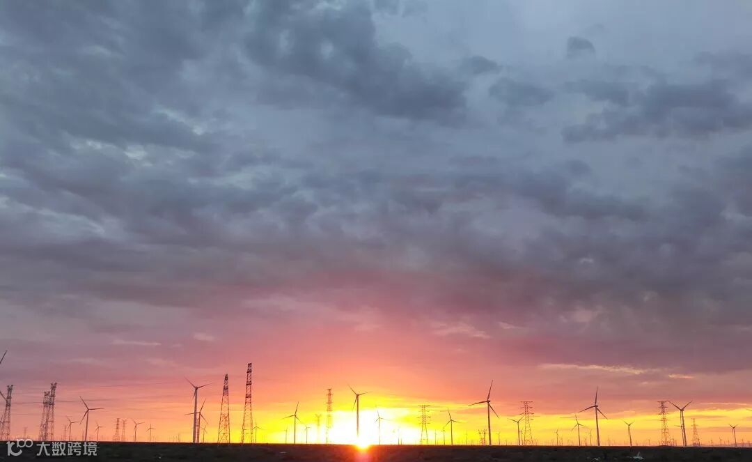傍晚时分,风电场晚霞。