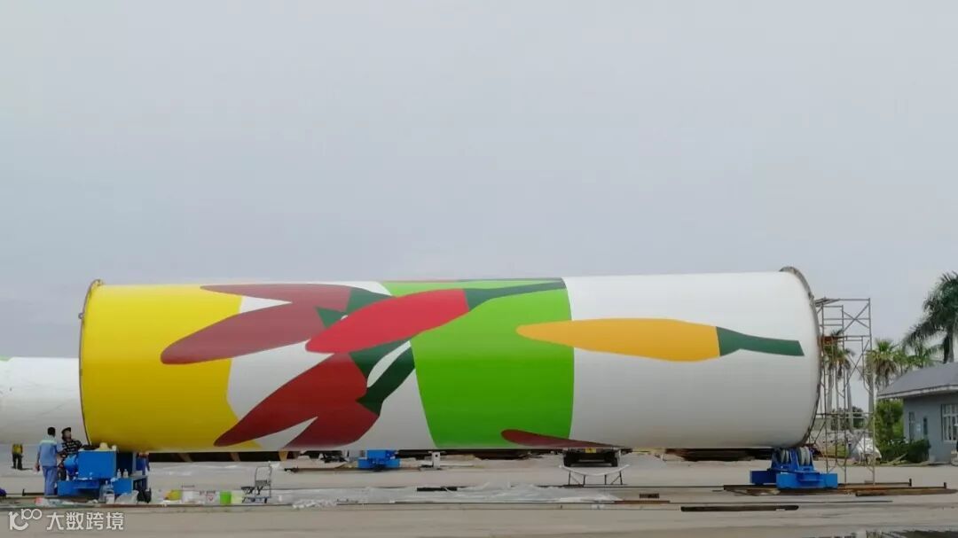 从前看到的风塔,都是白色的身躯,最多加上一个公司简称,今天突然在厂内发现喷漆工人给塔架穿新衣,让风塔有了温度。