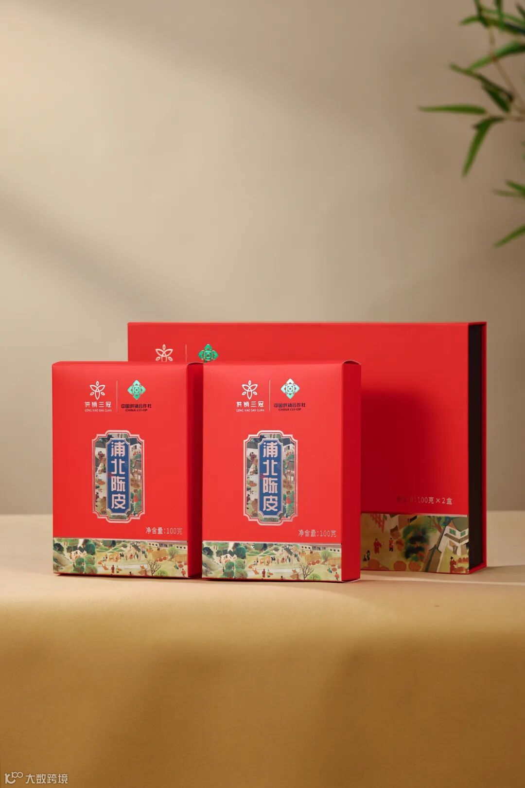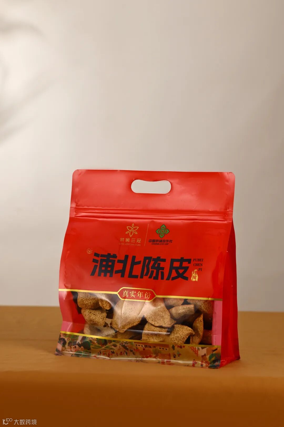 广西供销三冠陈皮有限公司生产的“三冠浦北陈皮”,精选广西浦北县13.5万亩柑园的柑果(20-30年树龄大红柑23万株,其中61-70年树龄大红柑有90株)。每一片浦北陈皮都经过选果、清洗、开皮、晒皮、翻晒、仓储、扫瓤等工艺,让每一片浦北陈皮都能感受到24小时x360°管家式服务。