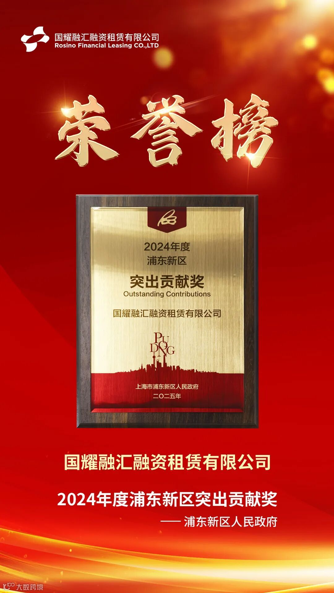 4月9日,上海市浦东新区举行2024年经济突出贡献企业表彰活动,国耀融汇租赁凭借在融资租赁领域的卓越表现、对实体经济的深度赋能以及对社会责任的积极践行,荣获2024年度“浦东新区突出贡献奖”。