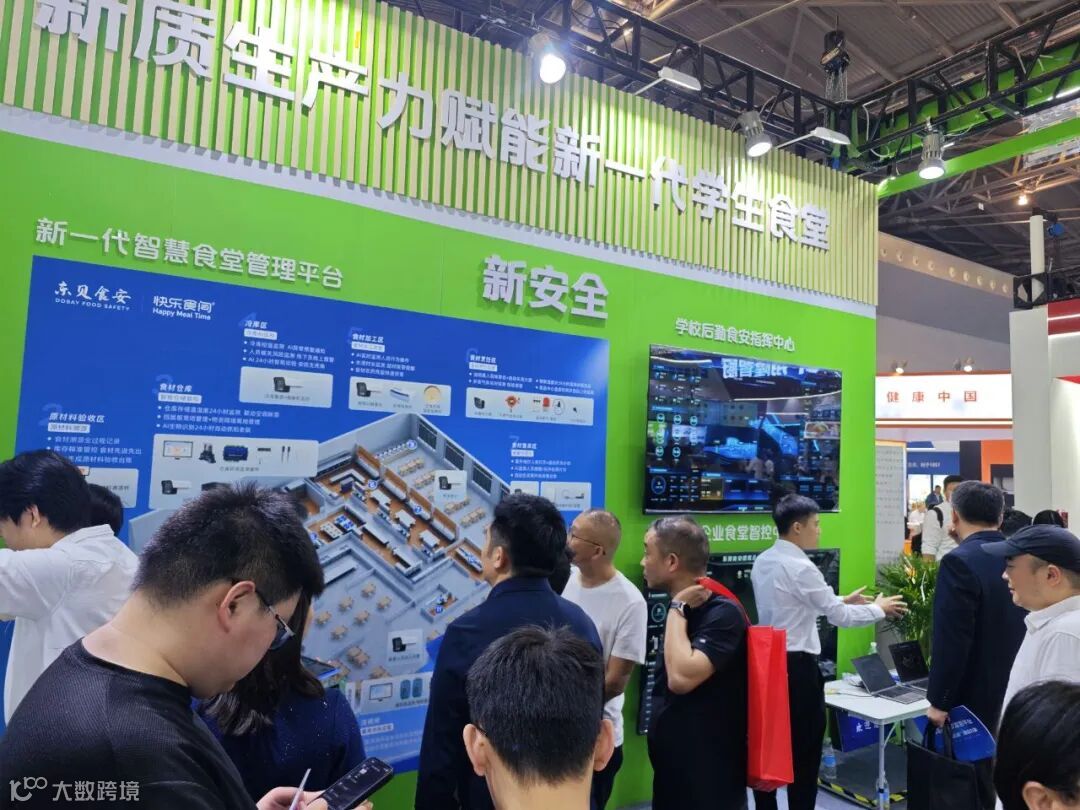 展会期间,东贝食安展位吸引了众多院校领导、后勤负责人及行业专家的驻足交流。其中,某高校后勤管理团队亲临东贝食安展区,全面了解了东贝甲方后勤食安监管平台功能效果与食堂后厨智慧食安全生态,并对食安指挥中心与智能AI留样秤、智能溯源秤、AI离岗火眼等创新技术给予高度评价,表示:“东贝的智慧监管体系真正实现了从食材入库到客诉公示的透明化管控,大幅提升食安风险预警效率,为校园食品安全提供了可靠保障!