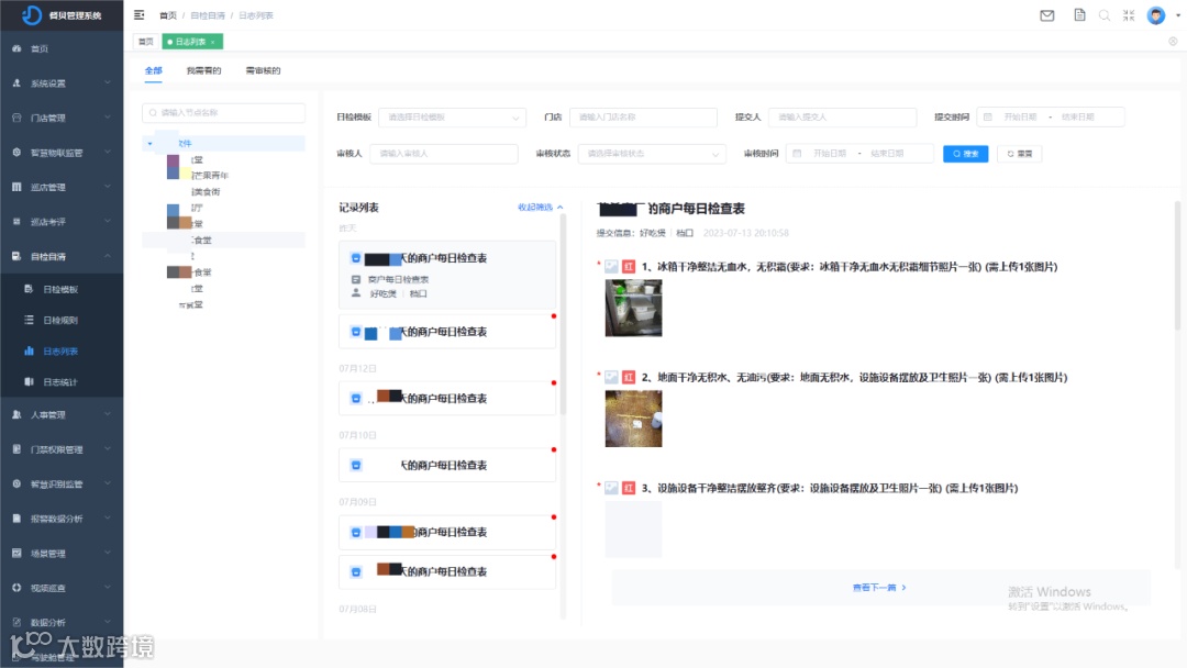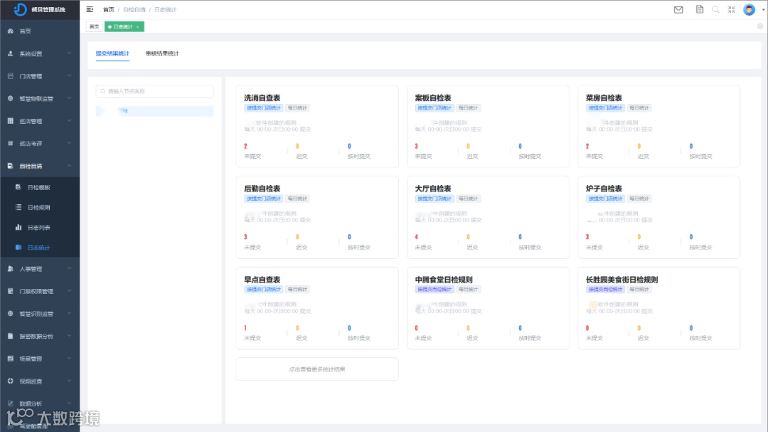 为了满足团餐企业不同门店的分类自检需求,东贝食安进一步升级了门店“自检自清”功能,管理层通过督贝管理系统下发门店自检任务时,可以根据自己的需求来选择门店的筛选条件,也可自行添加门店日检任务表,针对各个类型的门店来下发不同的自检任务,同时后台可对提交与审核的自检结果进行统计。