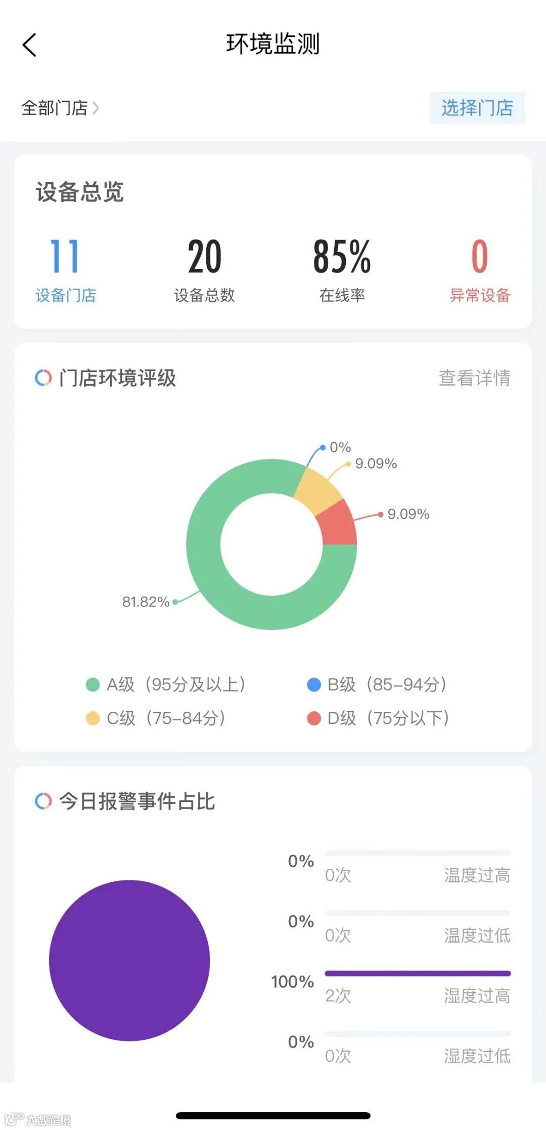 ● 我们给你全局视角,直观的场景统计看板,让管理者如同置身驾驶舱一般,全面掌握门店食安运营的情况和风险点,快速传达改进意见,高效赋能。