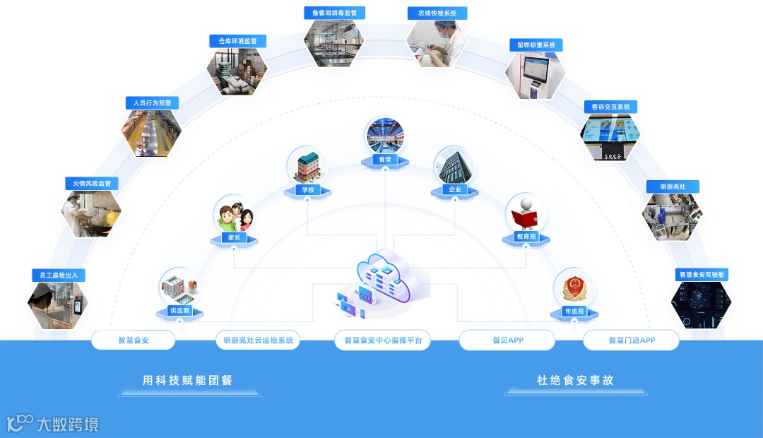 建立督贝食安管控平台,打通各方信息壁垒,通过智能化、信息化的管理工具及手段,实现对学校食堂管理过程中的食材加工、储存及餐具消毒等各个环节的全方位、全过程的监控与台账记录,真正实现来源可查、去向可追、质量可控、责任可究。