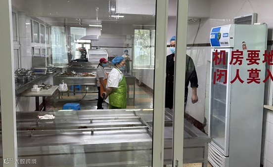 (2)次更衣间未封闭且屋顶陈旧,因工作人员随意出入专间形同虚设,阳光厨房专间摄像头角度未对准。