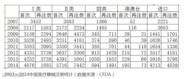 Ⅲ类医疗器械注册在 2012年有大幅增长后,2014出现下降;港澳台医疗器械的注册增长缓慢;