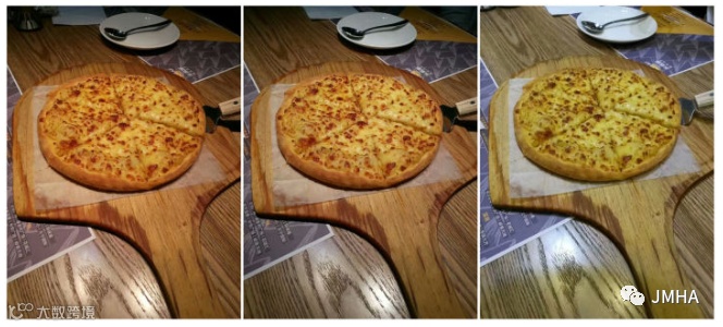 ▲不同色温对披萨的影响(明显左边比右边更有食欲)