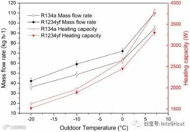 值得注意的是,虽然R1234yf 的温室效应潜能值(GWP)满足欧盟要求,但它在冬季里性能较差。在-5 ℃以下的室温下,R1234yf 的运行效率很低。