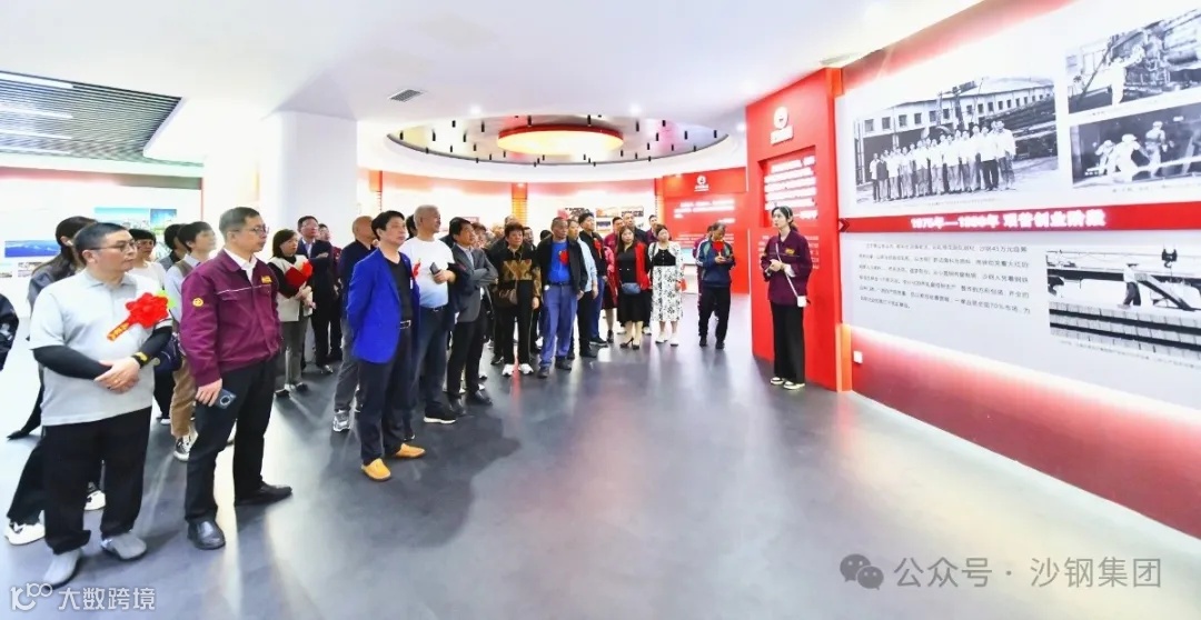 在沙钢党建馆,师生们跟随着讲解员,从企业艰苦创业历程中感悟沙钢精神,透过一件件“国之重器”领略钢铁魅力。