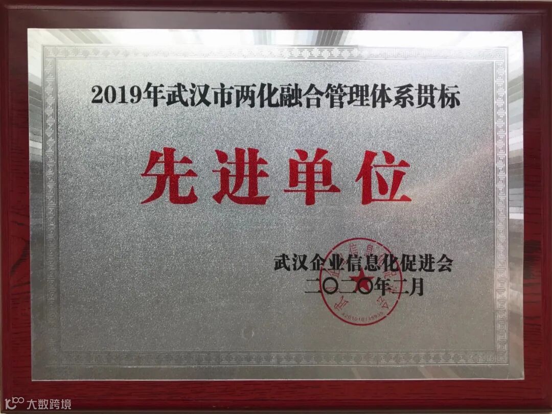 公司继2019年成功通过两化融合管理体系认证后,日前,荣获武汉企业信息化促进会颁发的“2019年武汉市两化融合管理体系贯标先进单位”称号。