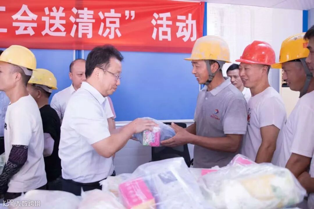 徐景军一行详细了解了项目进展情况,现场与项目一线员工亲切交流,并为他们送上清凉包、西瓜、矿泉水等防暑降温物品。他指出,项目部要科学调整高温时段作业时间,加强高温天气下的安全生产巡查和隐患排查,以“时时放心不下”的责任感抓实安全生产工作,坚决防范安全事故发生;一线员工要增强自我保护意识,严格遵守安全操作规程和高温作业规定,合理使用发放的防暑降温物品,注意劳逸结合;公司有关职能部门要持续做好防暑降温物资的采购、储备和发放工作,督促项目部落实各项防暑降温措施,切实履行好维护职工安全健康权益的职责。