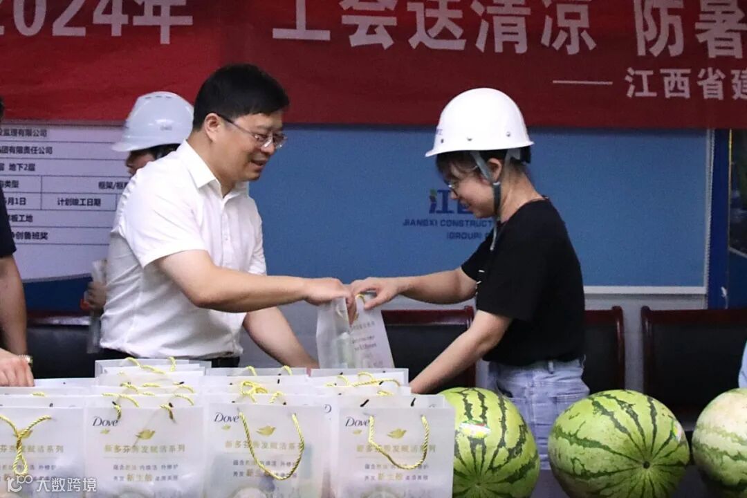 8月5日,集团公司总经理俞文生来到江西建工国内工程公司南大二附院红角洲分院二期建设项目开展“工会送清凉 防暑保安康”慰问活动,向高温天气下坚守一线的项目员工送去防暑降温物品。集团公司总经理办公室主任刘海燕,国内工程公司党委副书记、总经理枚东华,副总经理李红等参加慰问。