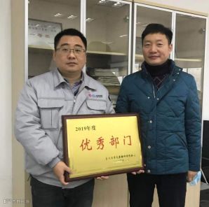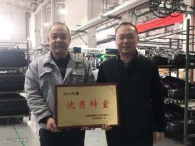 人事行政部部长康洁、制造管理部部长裴斌为优秀员工颁奖