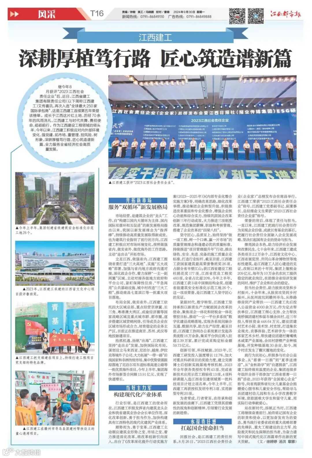 9月30日,《江南都市报》刊发整版报道《江西建工:深耕厚植笃行路 匠心筑造谱新篇》。