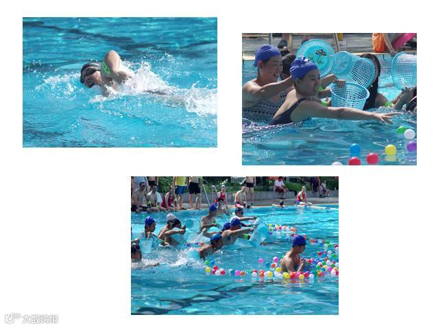 此次运动会共设“4*50游泳接力赛”、“龟兔赛跑”、“寻找年度目标”和“奔向年度目标”四个竞赛项目。泳池里浪花翻腾,人影起伏,选手们劈波斩浪,努力拼搏,用各种泳姿展现强健的体魄。“拉拉队”不时地欢呼雀跃,为选手呐喊助威。
