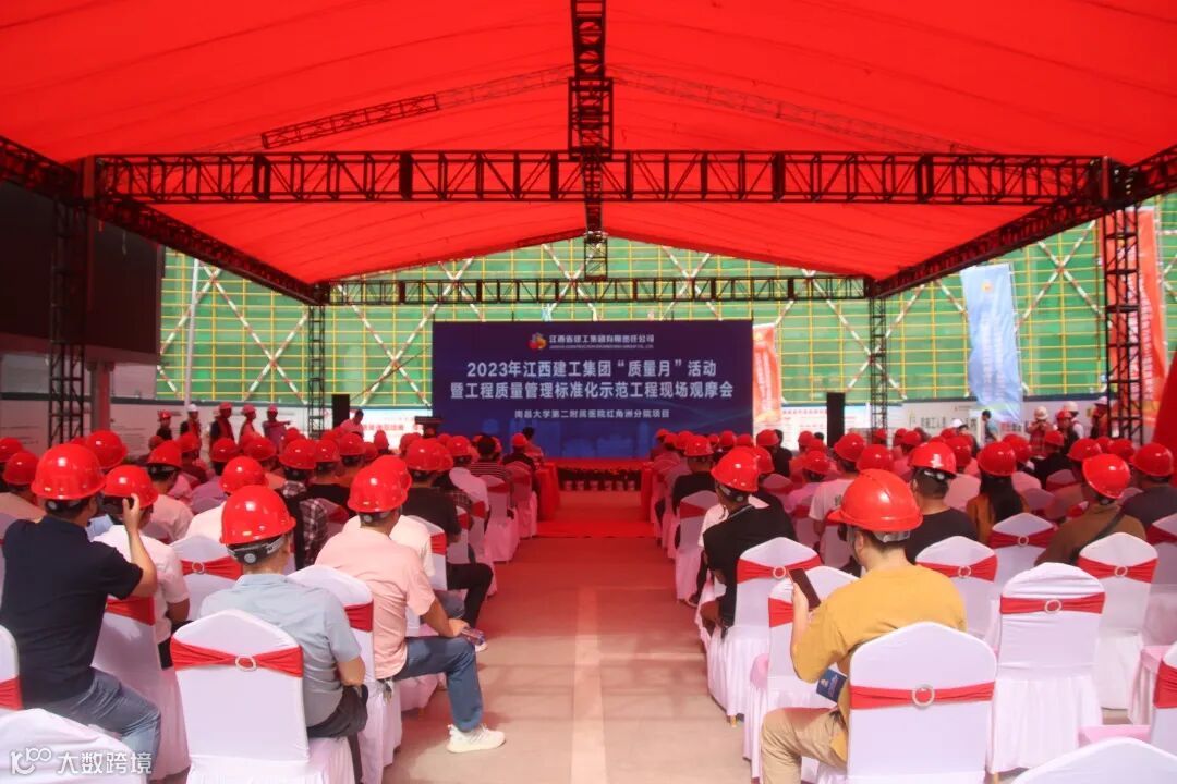 为贯彻落实省委省政府、省国资委关于开展“质量月”活动的有关决策部署,扎实开展集团公司工程质量管理标准化工作,进一步提高分公司及项目部工程质量管理意识,9月25日,集团公司在国内工程公司南大二附院红角洲分院二期建设项目召开2023年江西建工集团“质量月”活动暨工程质量管理标准化示范工程现场观摩会。