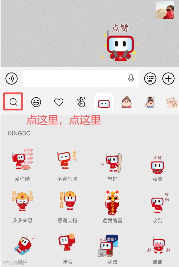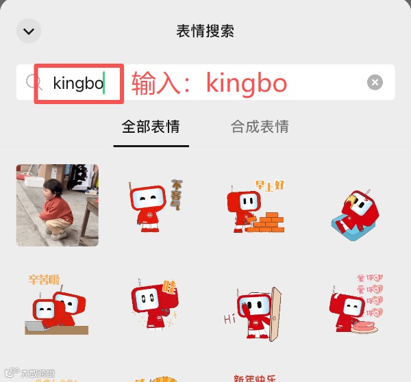 1️⃣ 微信表情中搜索“Kingbo”;