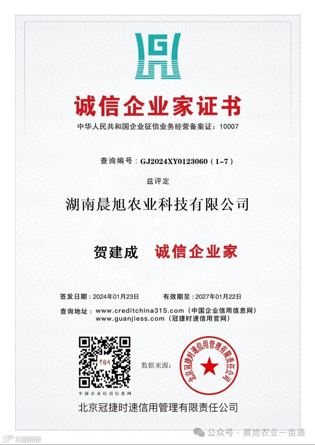 这一荣誉的获得,不仅是对湖南晨旭农业科技有限公司长期以来诚信经营、稳健发展的肯定,更是对其品牌价值和综合实力的有力证明。