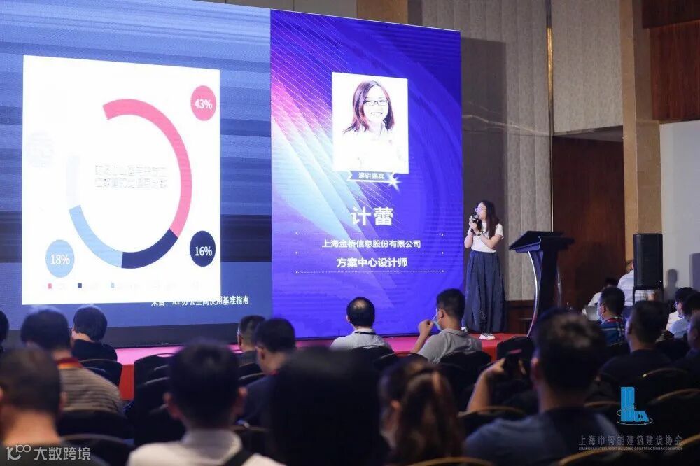 上海金桥信息股份有限公司方案中心设计师计蕾在论坛上以“智能空间”为主题,从现代会议空间现状入手,与现场的行业精英、领域专家探讨了金桥在会议空间上的思考和解决方案。