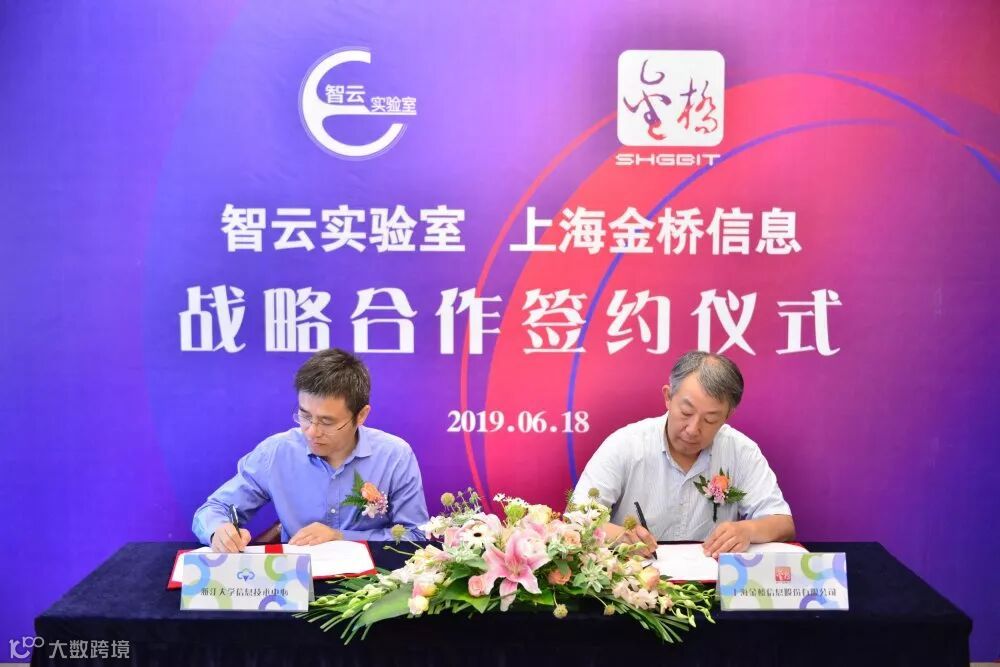 2019年6月18日,上海金桥信息股份有限公司与浙江大学智云实验室正式达成战略合作,并于浙大西溪校区举行签约仪式。浙江大学信息技术中心主任、智云实验室主任陈文智教授,上海金桥信息股份有限公司董事长金国培先生,浙江大学信息技术中心副主任董榕,信息技术中心总工程师、智云实验室副主任张紫徽,信息技术中心办公室主任袁书宏,规划发展部部长赵亚萍,智云实验室对外合作总监云霞,教学支持部部长张宇燕,教学支持部副部长李萌,教学支持部汤显峰、教学支持部黄健,上海金桥信息股份有限公司杭州分公司经理蒋力宽等出席本次战略合作签约仪式。