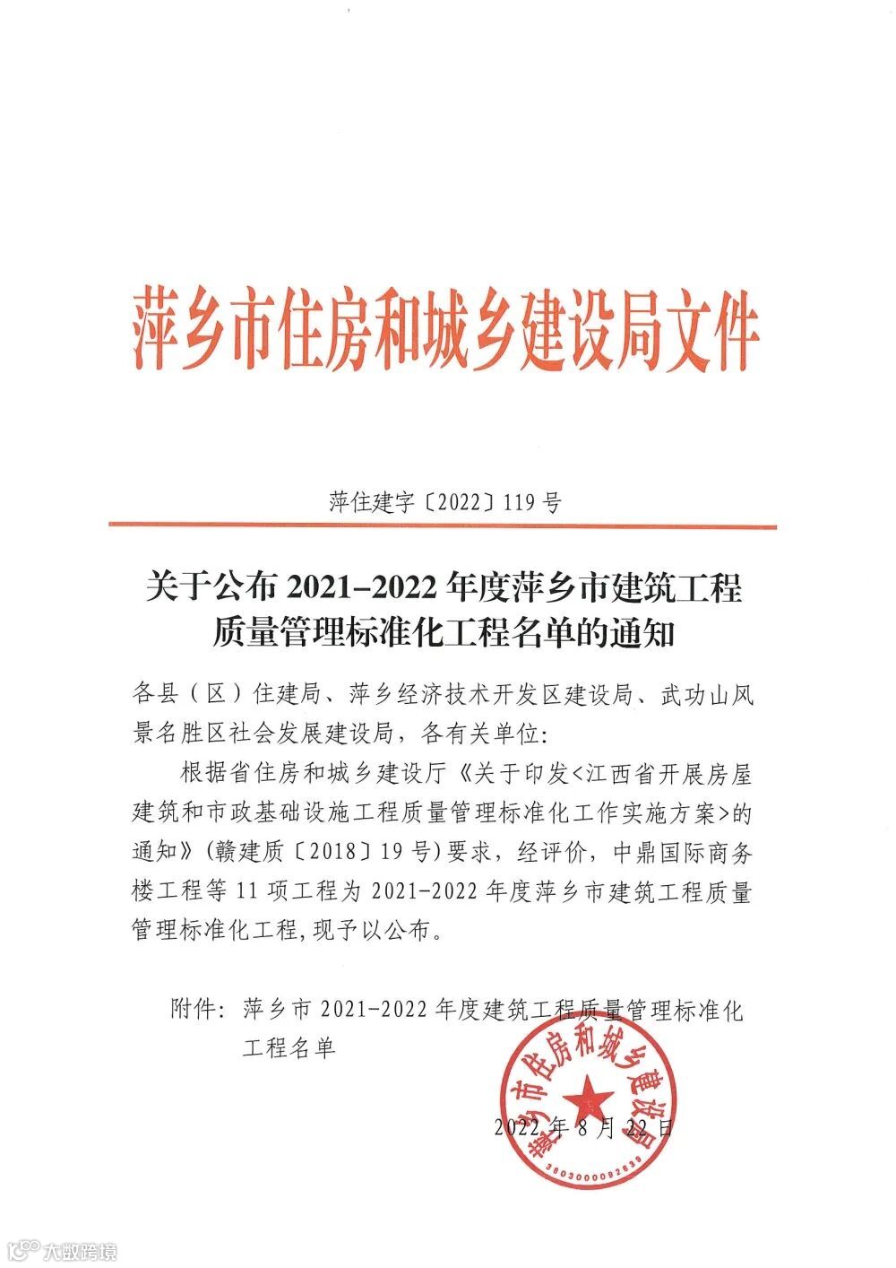 公司新闻 | 热烈庆祝《芦溪工业园智能制造产业园建设项目》获评“2021-2022年度萍乡市建筑工程质量管理标准化工程”!