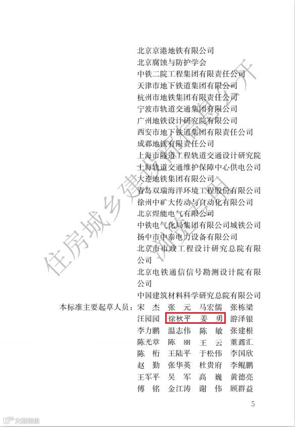 由中建城开参与主编的《地铁杂散电流腐蚀防护技术标准》由住房和城乡建设部发布实施!