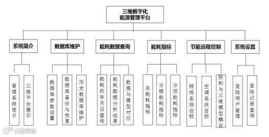 云技术、BIM技术与能源管理平台的结合其中的一大难点在于如何使BIM技术与传统能源管理平台无缝结合,即如何使硬件采集的数据能够与三维模型进行结合,同时如何使BIM所携带的数据能全部传递到平台中。通过第三方软件使两者进行结合是相对比较简单的方式,在结合过程中某些功能模块需要调整的地方需要对第三方软件进行二次开发。软件结构如图3所示。