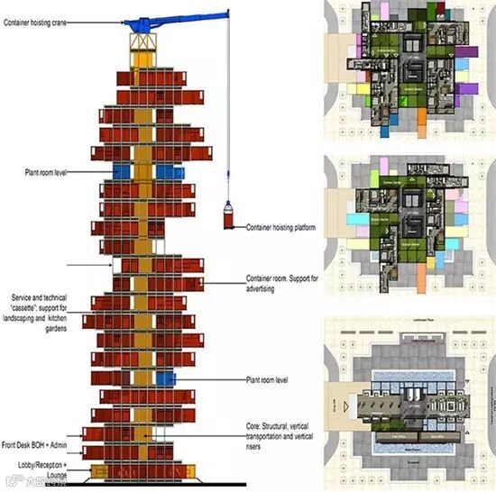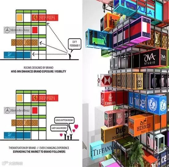 去年我们介绍过运用集装箱概念打造的公寓,每一套公寓都可以独立移动,可选择不同的居住地点,就像积木一样。其实早在两三年前,已经有设计师在香港设计出类似概念、楼层更高的蜂巢酒店。单从视觉效果来看,这是一个“酷劲十足”的产品。
