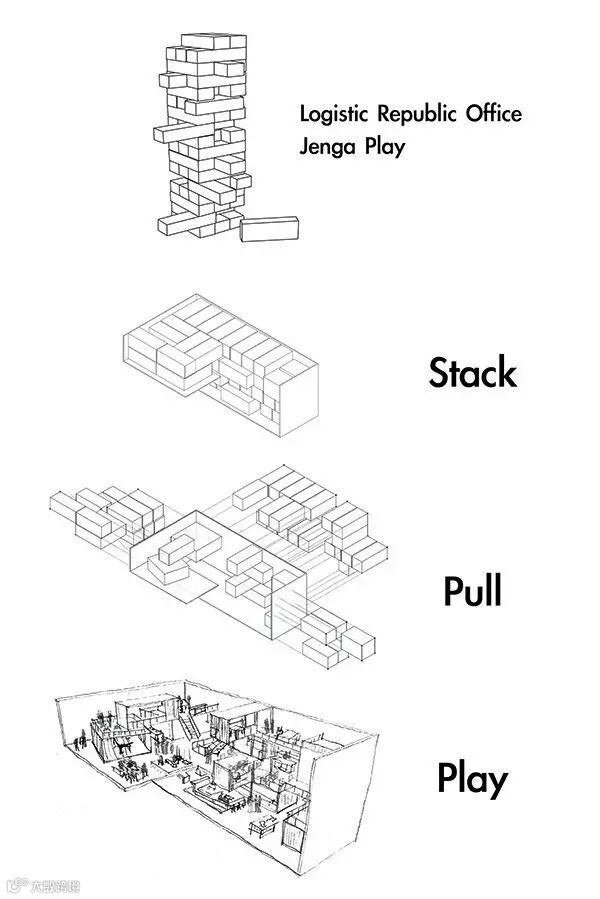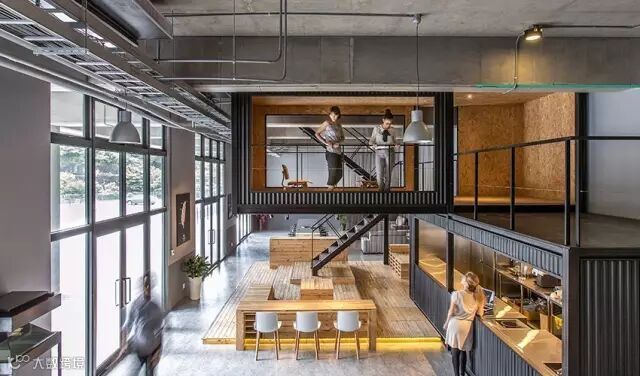 除了居住,集装箱遇见大面积的办公空间,也可以擦出“酷炫”的火花。