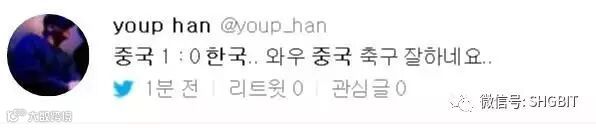 “中国1-0韩国 哇哦 中国足球不错啊”