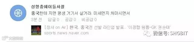除了如火如荼如暴走军团的粉丝阵容之外,中韩人民在发到各自主流媒体(如微博、微信、朋友圈,韩国naver 网站等)的肺腑感言也是不要太精彩!