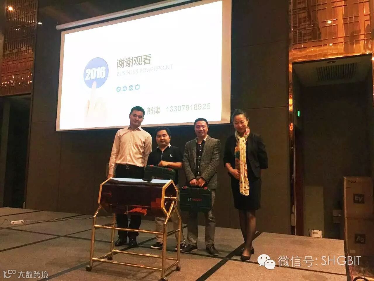 图:Bosch华东区会议广播销售经理龚晓为一等奖获得者泰豪科技颁奖