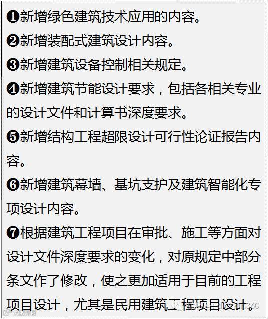 《建筑工程设计文件编制深度规定(2016年版)》与2008年版规定相比主要变化如下: