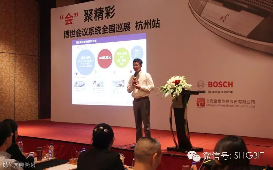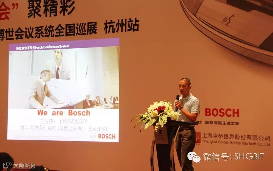 展风徐来,会聚精彩,博世大中华区销售总监董涛先生在展会上分享了博世的品牌故事;金桥信息浙江区域销售经理华伟欣先生对金桥信息作了全新的阐述;博世浙江区销售经理王成峰先生给大家介绍了博世的经典案例;博世东区技术经理尤希益先生对博世会议系统产品作了详细介绍;最后的互动体验环节,让嘉宾近距离和博世会议系统产品来了一次亲密接触。