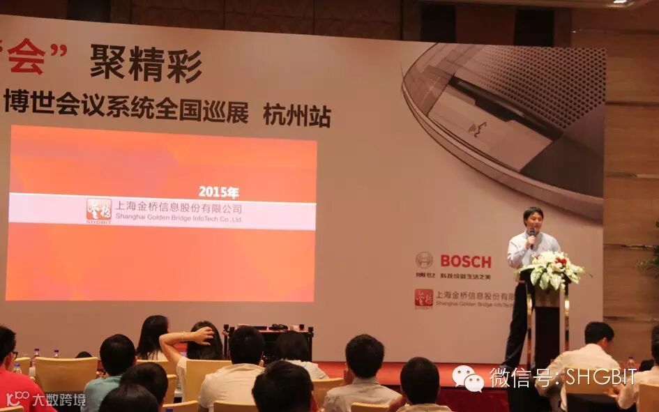 上海金桥信息“博世会议系统全国巡展-杭州站”于2015年9月17日袭卷美丽的西子湖畔,在杭州万豪酒店成功召开。博世销售总监董涛、博世华东区销售经理龚晓、博世浙江区销售经理王成峰、博世东区技术经理尤希益、金桥市场总监李鸿华、金桥系统渠道部经理章冰烨、金桥系统渠道部副经理刘桦、金桥浙江区域销售经理华伟欣、金桥博世渠道销售经理罗黎明出席了本次会议。
