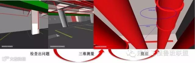 三维施工审查较碰撞检查需要人工对BIM模型进行校审,可利用测量工具和批注工具对施工图发现的问题进行标注。