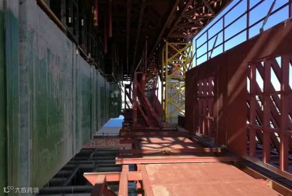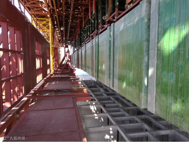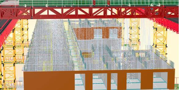 3、“空中造楼机”具有沿建筑高度方向运动、通过造楼机建造平台实现剪力墙的现场浇筑;