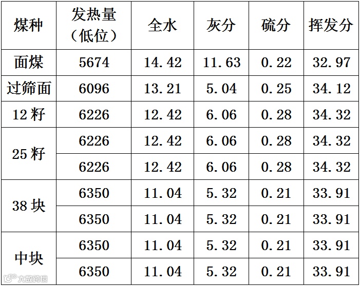 普禾煤矿煤质指标