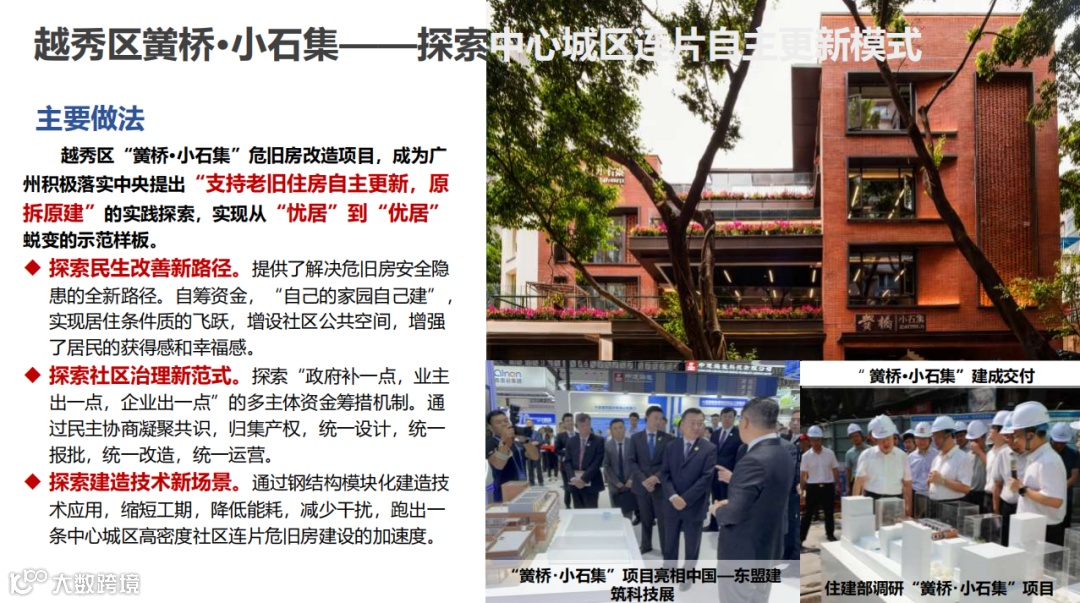 演讲以我院参与的广州城市更新政策研究和项目实践为例,围绕学习贯彻中央城市工作会议精神,聚焦建设现代化人民城市的目标任务,立足广州超大城市发展实际,将城中村改造、城市更新作为实现城市高质量发展的重要抓手,把改善民生、优化城市功能结构和促进经济发展动能增长紧密结合起来。具体分享了广州在城市更新政策机制方面的探索和针对城中村改造新模式、危旧房“原拆原建”、低效楼宇更新、老旧厂区改造等不同类型城市更新对象的实践成效。分析并阐述了广州积极响应国家部署,通过因地制宜的更新策略与多方协同的工作机制,推进了城市空间重塑、功能完善、品质提升与融合发展,走出一条符合超大城市发展规律、体现中国特色的城市更新可持续发展实施路径。