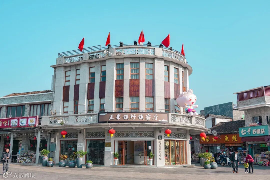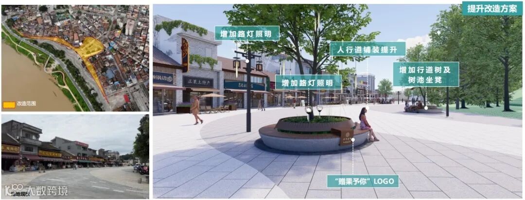 一个美丽圩镇客厅:对老街地标性建筑圆角楼实施“微改造”,整合内部功能,增设展示架和正果特色元素,展示历史文化等。