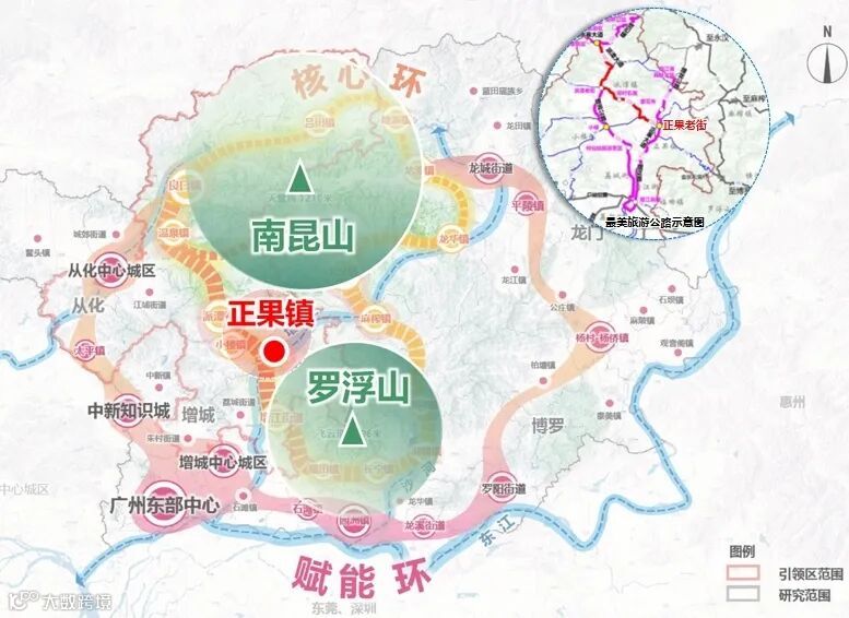 正果镇在环南昆山-罗浮山县镇村高质量发展引领区-空间总体结构中的位置示意图
