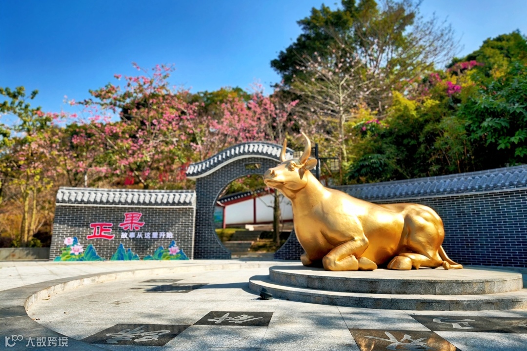 一个美丽乡镇入口通道:在正果高速出口增设“千年古镇·正果欢迎您”特色标识;正果大桥入口处设置“金牛”雕塑文化地刻及岭南风格景墙。
