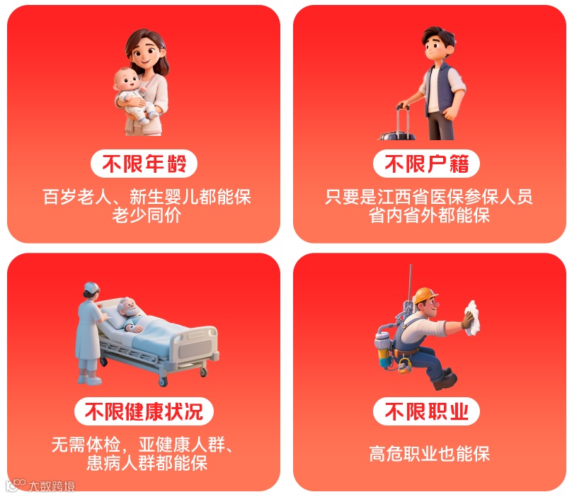 不受户籍、年龄、健康状况、既往病史、职业类型等限制,只要是江西省医保参保人就能参保。