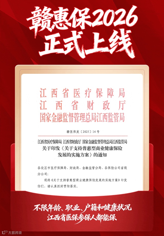 “赣惠保2026”由江西省医疗保障局、国家金融监督管理总局江西监管局指导监督,11家保险公司共同承保,打破了省内的地域限制,整合升级了江西省各地市原有的惠民保,紧密衔接基本医保,是专属于江西人民的普惠型补充医疗保险。