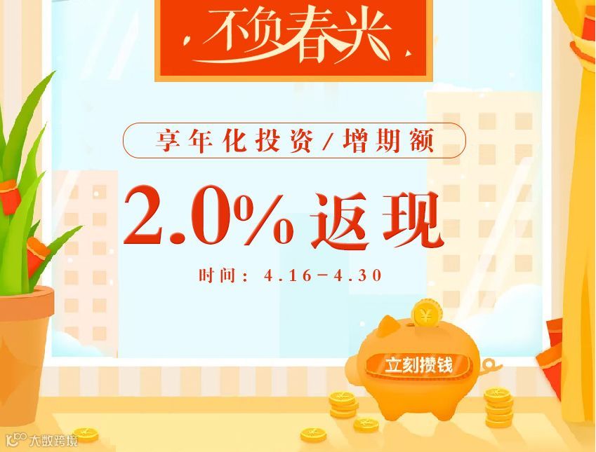 不负春光,享年化投资/增期额x2.0%返现