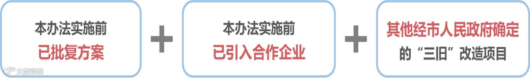 前款所称的“三旧”改造项目是指在本办法实施前已批复方案或者已引入合作企业的,以及其他经市人民政府确定的“三旧”改造项目。